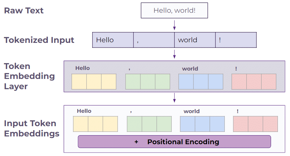 These tokens are then converted into numerical values known as embedding vectors, which is the format expected by the transformer model. However, because transformers can’t inherently understand the order of words, each embedding vector is combined with a positional encoding. This step ensures the order of the words is taken into account by the model.