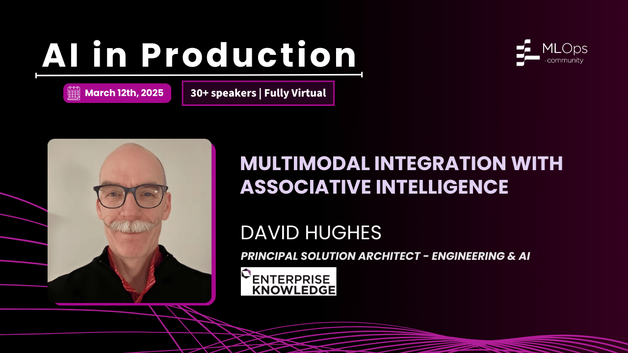 David Hughes, Principal Data & AI Solution Architect at Enterprise Knowledge, will be presenting “Multimodal Integration with Associative Intelligence” at MLOps Community’s AI in Production virtual conference on Wednesday, March 12th. The conference will cover everything from managing AI costs, debugging, handling latency, and building trust in outputs to discussions on practical approaches, lessons learned from real applications, and driving the future of AI implementation at scale.